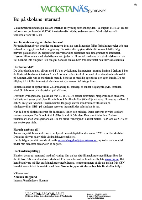 Registrering & ansökan internat